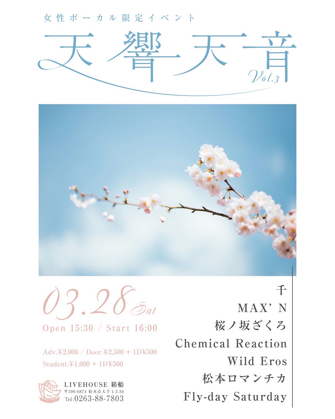 2026/03/28(土): Fly-day Saturday Live @ LIVE HOUSE 箱船